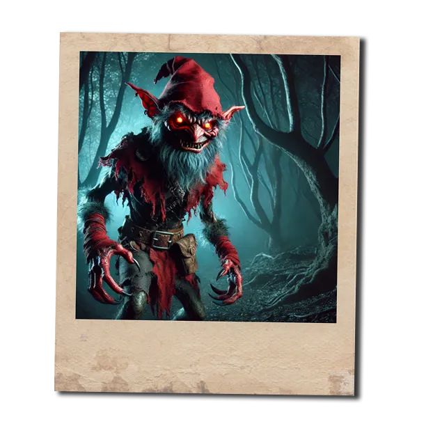 Differences: The Pukwudgie is tied to Native American beliefs and is viewed as a forest spirit rather than a bloodthirsty being. Unlike the Redcap’s red clothing, Pukwudgies are usually depicted in earth-coloured attire, camouflaged to blend into their environment. Their motivations are more complex, sometimes acting as tricksters rather than outright violent entities.