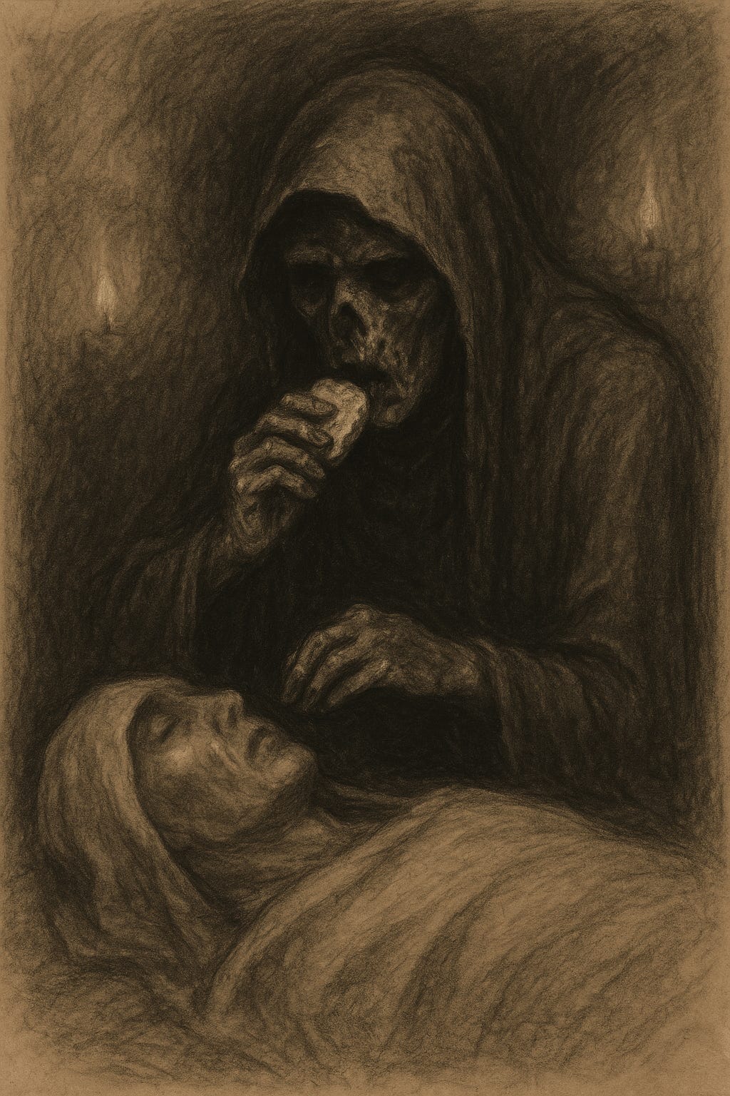 No one was ever formally called a "sin-eater." But the role was there, in everything but name: in the woman who washed the dead and wouldnât speak for days, in the neighbour who sat vigil in silence, then left before dawn. In the food left uneaten. In the eyes that avoided the coffin.