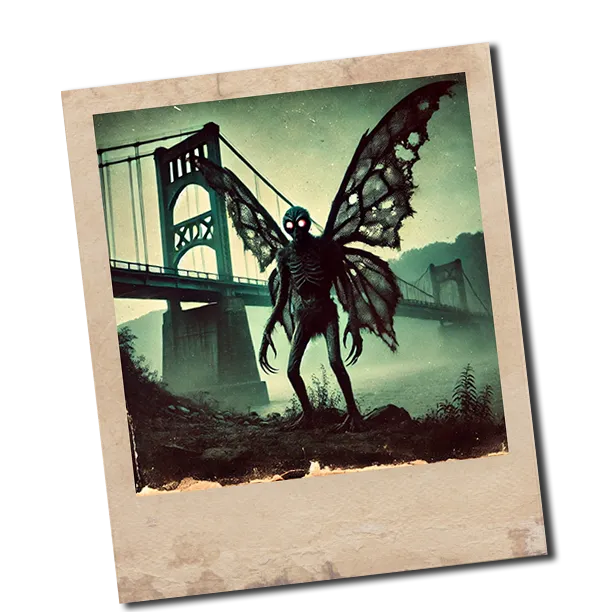 The Mothman was first reported in November 1966 when two couples encountered the creature near the same TNT area. The Mothman reportedly chased their car at speeds exceeding 100 miles per hour. Over the following year, dozens of sightings followed, with witnesses describing the creature as seven feet tall, with wings and red, glowing eyes. These sightings culminated with the tragic collapse of the Silver Bridge in December 1967, leading many to believe the Mothman was a harbinger of doom.