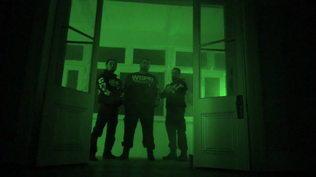 Paranormal investigator night vision cameras inside the Officers’ Quarters of Cockatoo Island captured forty-five seconds of footage. A child-sized figure peers around a doorframe in the hallway, looks toward the camera, then retreats be…