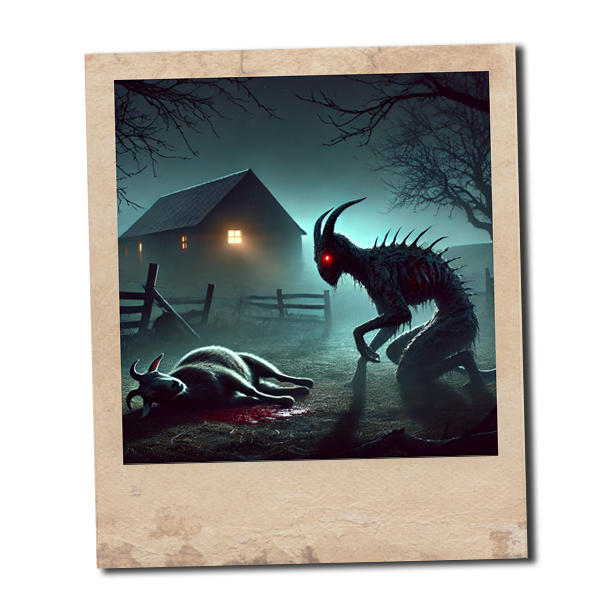 Livestock Mutilations: Farmers report finding goats, chickens, and cattle drained of blood, with puncture wounds on the neck or chest. Unlike typical predator attacks, these carcasses are often left untouched except for the wounds.