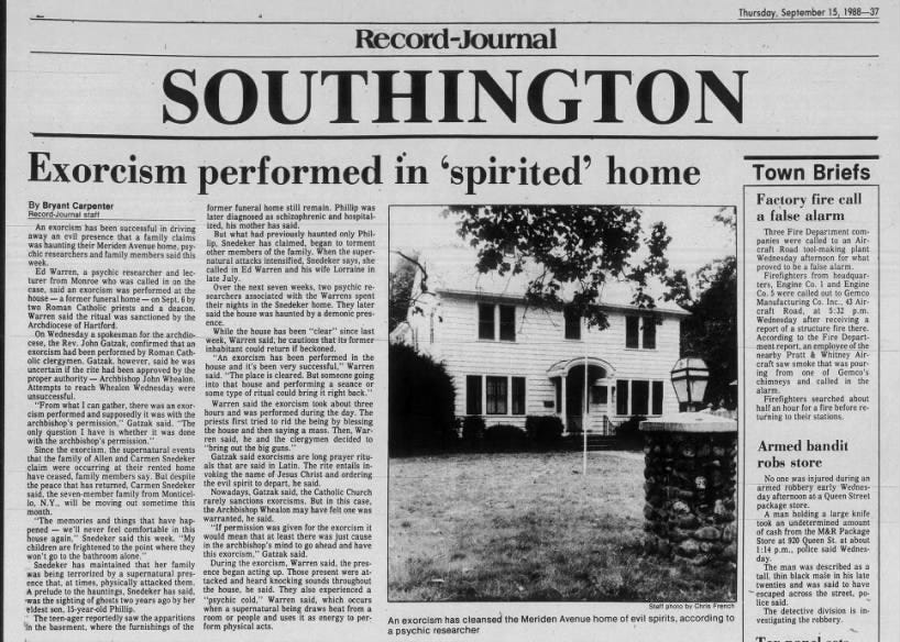 In the summer of 1986, a family’s search for accommodation nearer to a cancer treatment facility for their son, led them to a spacious rental property in a quiet Connecticut suburb. What followed became one of the most harrowing paranormal cases in American history. The events at 208 Meriden Avenue involved violent supernatural phenomena, a teenage boy’s psychological deterioration under possession, and an investigation by prominent paranormal researchers that culminated in a full exorcism. The case generated extensive media coverage, a bestselling book, and eventually a Hollywood film. This is the Snedeker family’s account of what happened, at their house that, unbeknownst to them, at the time, was once Southington’s Hallahan Funeral Home.