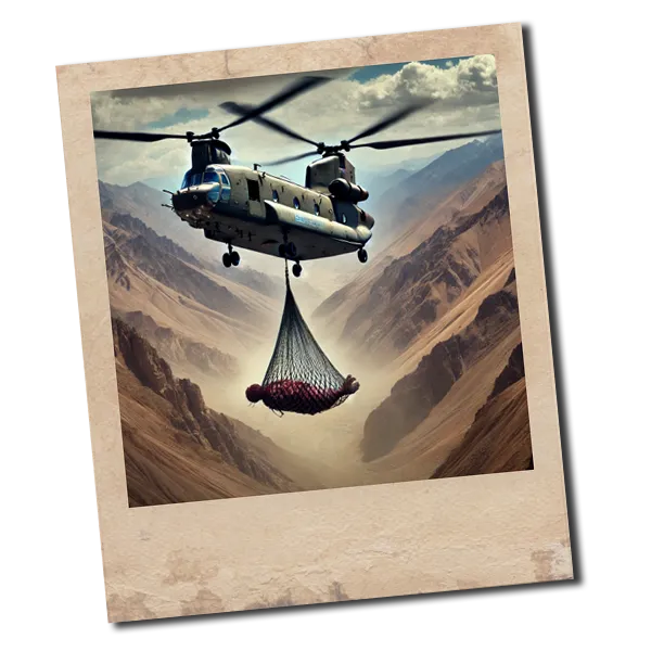 The body was wrapped in several layers of thick tarp and secured to the helicopter via a heavy-duty sling. Those present during the extraction were sworn to secrecy, and additional soldiers were brought in to guard the site while the bodies were airlifted to a secure military base.