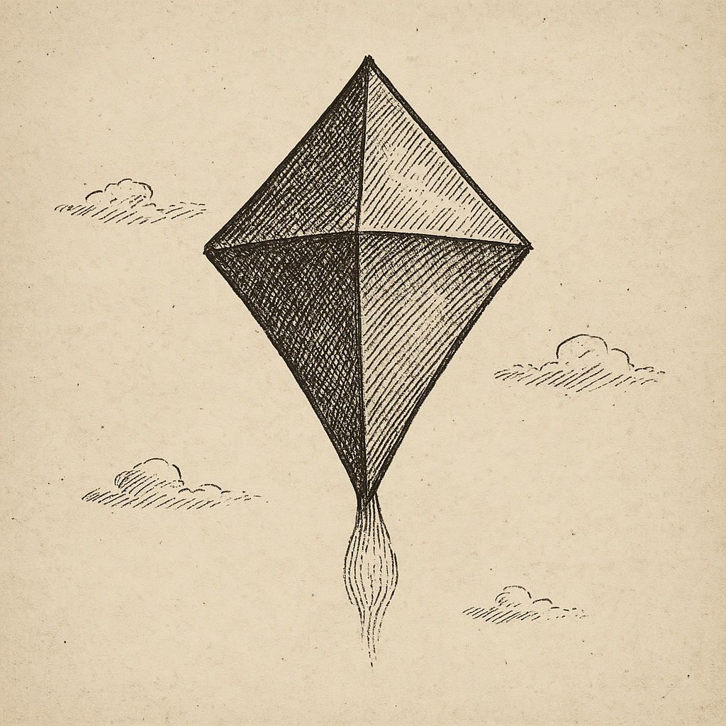 A less common UFO shape described as diamond- or kite-like, often hovering or rotating slowly. Sometimes seen with a pulsating light or trailing luminous mist.