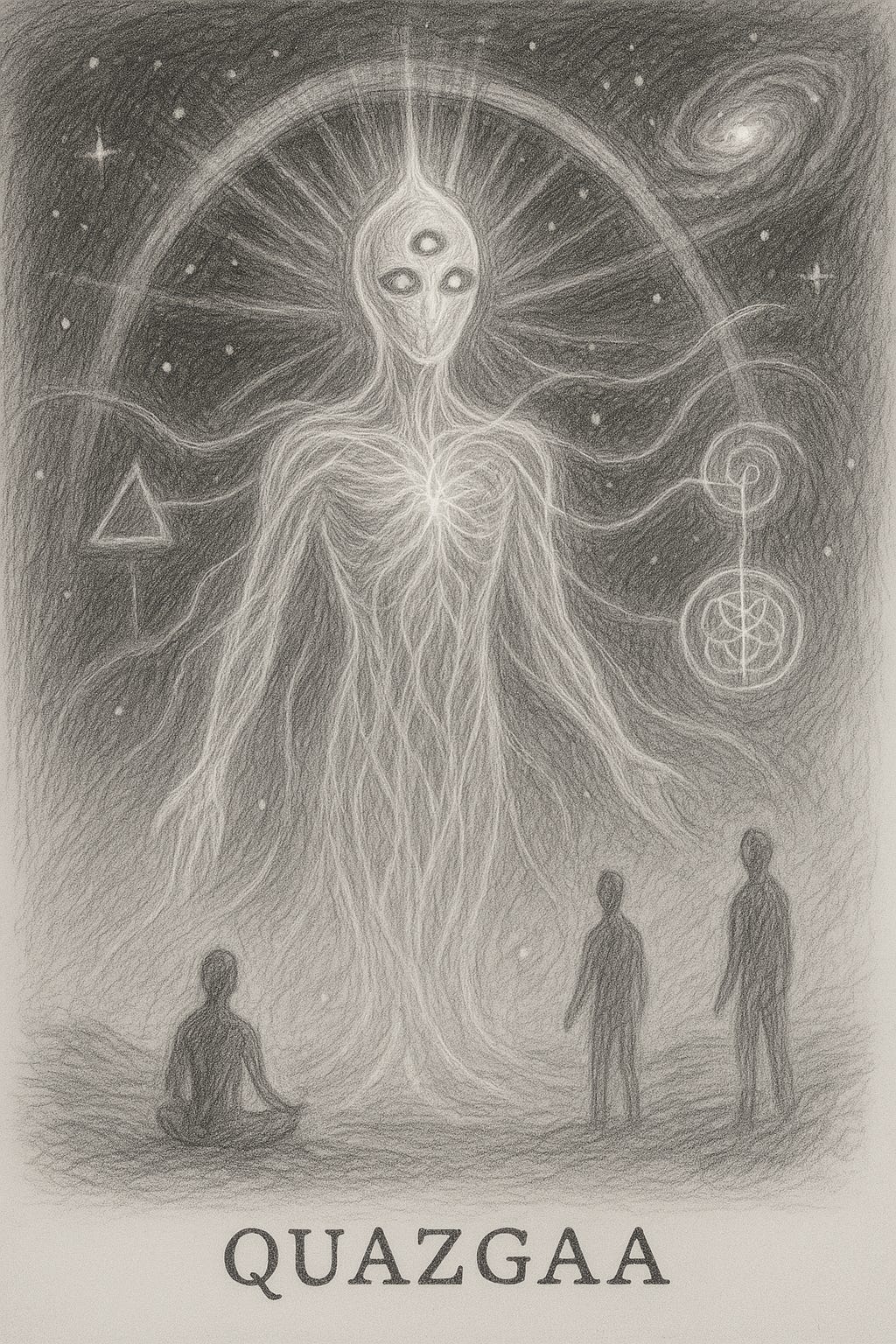 A rare and obscure name occasionally found in early contactee literature or channeling transcripts, Quazgaa is described variously as a singular intelligence, a collective alien consciousness, or even a planetary oversoul. While never gaining widespread recognition, the name surfaces in the writings of a few independent experiencers who claimed to receive telepathic transmissions from this entity during meditation or trance states. Descriptions of Quazgaa tend to be symbolic or non-physical—often emphasizing themes of unity, universal law, or interstellar harmony. Due to its elusive nature, Quazgaa remains a curiosity within the broader contactee and metaphysical fringe of ufology.